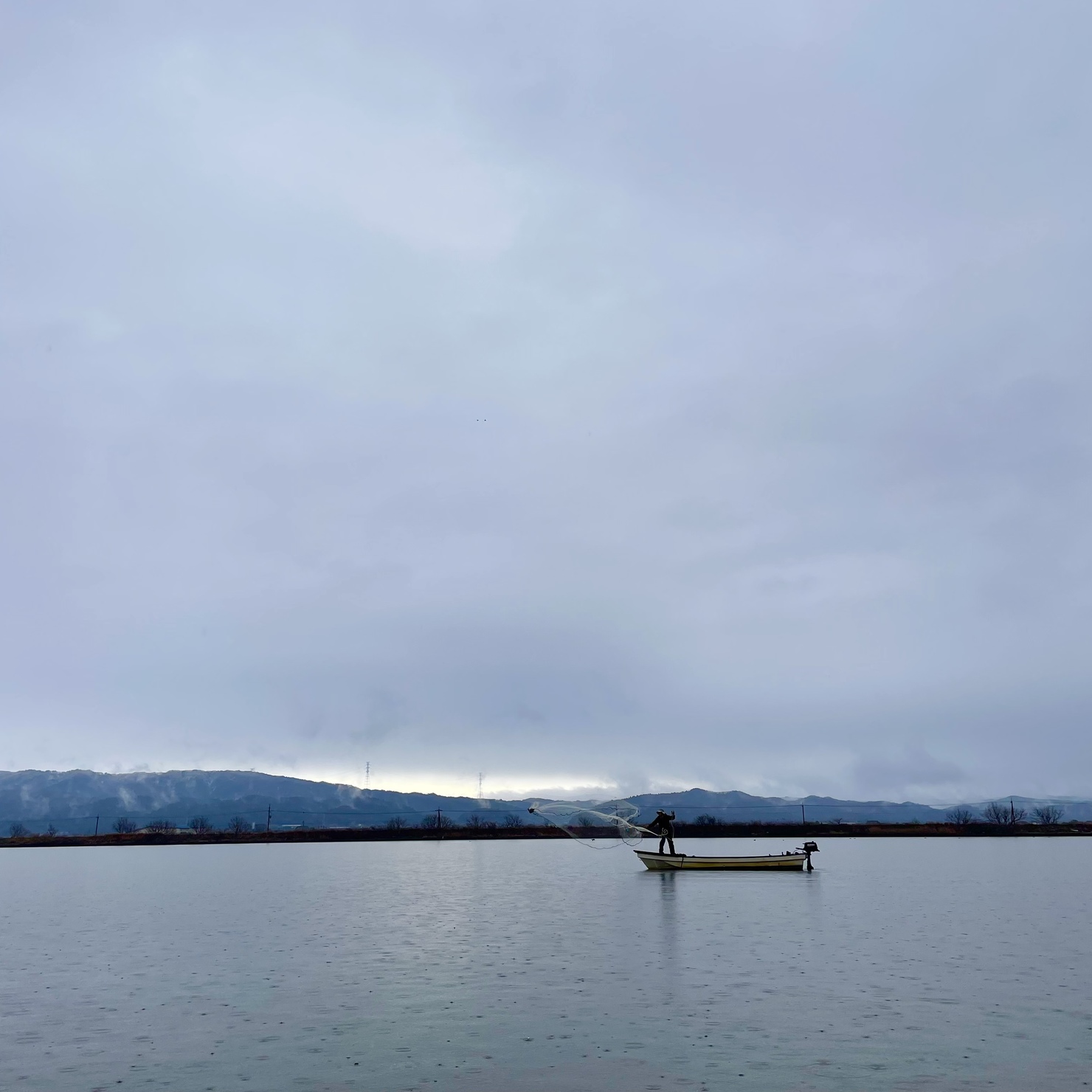 邑知潟の桜並木。春には、満開の桜が邑知潟を彩ります。小鳥のさえずりを聞きながら、お弁当を食べるもよし、散歩をするもよし、釣りをするもよし。様々な楽しみ方がある、絶景の穴場スポットです。今から、春が楽しみです。