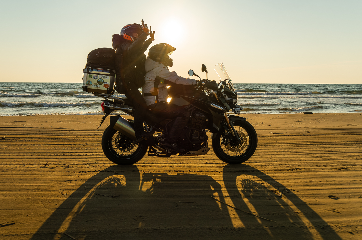 羽咋と言えばSSTRのゴール地点になる千里浜。出迎える地元の方と太平洋側から旅をしてきたライダーの関わりに、その場にいるだけで胸が熱くなります。この写真はひと際カッコ良いゴール写真。偶然、本人にも写真を届けられて良い思い出になりました。